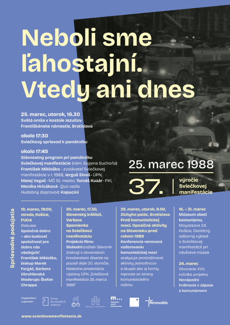 Pri príležitosti 37. výročia Sviečkovej manifestácie sa 25. marca 2025 uskutoční už tradičné spomienkové podujatie v Bratislave.